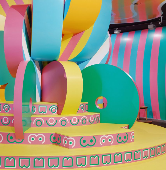 Furman trasladó esta tendencia colorista a Melbourne, donde transformó la cafetería de la galería NGV International con una vibrante instalación de Boudoir Babylon y Sibling Architecture. En Londres, su mosaico de flores decoró un centro de maternidad.