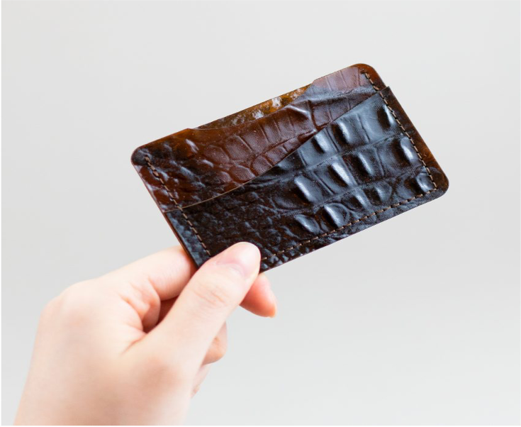 El cuero alternativo de Tômtex está hecho de conchas marinas de deshecho y granos de café, embozados para que imiten el cuero animal. El deshecho de comida también fue usado por la diseñadora Alice Potts para producir singulares mascarillas de protección facial.