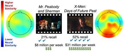 Recientemente, neurocientíficos han estudiado en humanos cómo se comportan los cerebros cuando miran trailers de películas, y con estos datos han podido pronosticar las ventas de entradas de cine. La investigación se enfocó en testar una hipótesis sobre el valor comercial y la capacidad de un trailer para incitar una actitud neurológica similar en otros miembros de audiencia. Equipando a 122 participantes en el estudio con monitores de EEG los científicos pudieron determinar que trailer producía patrones similares en la actividad del cerebro en gran cantidad de individuos.