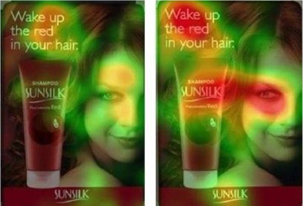 Y el presentado en la imagen de la derecha parece ser más relevante para la modelo … por lo que automáticamente seguimos su mirada y tratamos de comprender su interés.